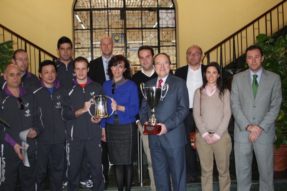 En la mañana de hoy, el Ayuntamiento de Priego presidido por su alcaldesa María Luisa Ceballos, ha realizado en el salón de plenos del Consistorio prieguense la recepción oficial de los jugadores del Cajasur Priego por los triunfos obtenidos en el campeonato de España de Tenis de Mesa celebrado en Almería, donde el club prieguense ha logrado su quinta copa del Rey y Carlos Machado ha obtenido su 8º campeonato de España absoluto. Al acto asistieron jugadores y miembros del Club de Tenis de Mesa Cajasur-Priego, el presidente de la RFETM Miguel Ángel Machado y representantes de la corporación municipal prieguense.