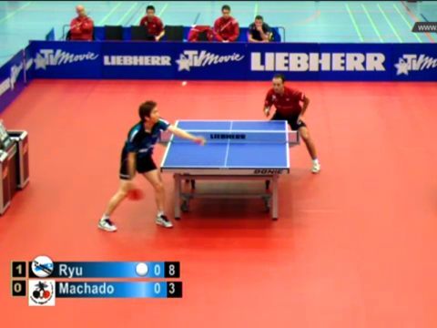 Al igual que en el partido de ida el sorteo emparejaba al campeón olímpico Ryu Seung Min y a Carlos Machado que esta noche se convertía en el protagonista derrotando al número 26 del mundo. El prieguense fue siempre a remolque sin dejar que su oponente tomara ventaja y llegó al 2-2 con parciales de 11-4, 9-11, 11-5 y 8-11. El jugador del CajaSur salió muy confiado en el quinto set y tomó una ventaja que su rival no pudo neutralizar para anotarse un gran victoria ante un jugador de primera fila mundial como es el coreano Ryu Seung Min.