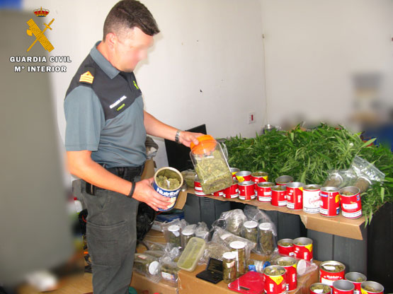 Tras comprobarse que al citado inmueble entraban y salían numerosos jóvenes, llegando incluso a percibirse en las inmediaciones un fuerte olor a marihuana, se procedió al registro del mismo, localizándose en su interior 14 plantas de marihuana, así como, dos invernaderos de interior, un secadero de marihuana y gran cantidad de fertilizantes, medidores de PH y productos para el cultivo intensivo de esta sustancia. Asimismo, en otra estancia de la vivienda, se localizaron unos dos kilogramos de marihuana seca, distribuida en más de 30 botes ya envasados al vacío, dispuestos para su posible venta, así como dos básculas de precisión y 5,2 gramos de polen de marihuana entre otros efectos, por lo que se procedió a la detención del responsable del local.