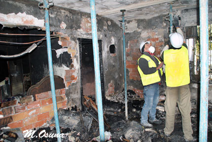 A primeras horas de la mañana, técnicos municipales se trasladaron al lugar de suceso, para examinar los daños en la estructura de las viviendas. Posteriormente, empleados municipales procedieron a apuntalar la vivienda afectada, que se encuentra totalmente calcinada.