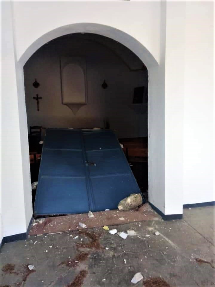 tejas y bombillas y que dentro de la ermita no había nada de valor, tan sólo unos cuadros que no se ha visto afectados por los daños.