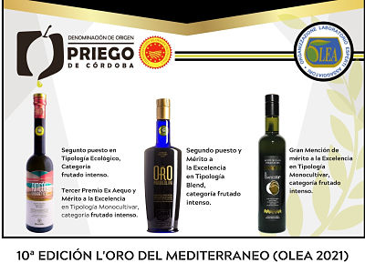 Tres firmas amparadas en la D.O.P. "Priego de Córdoba", reconocidas en los premios L’ORO DEL MEDITERRÁNEO 2021