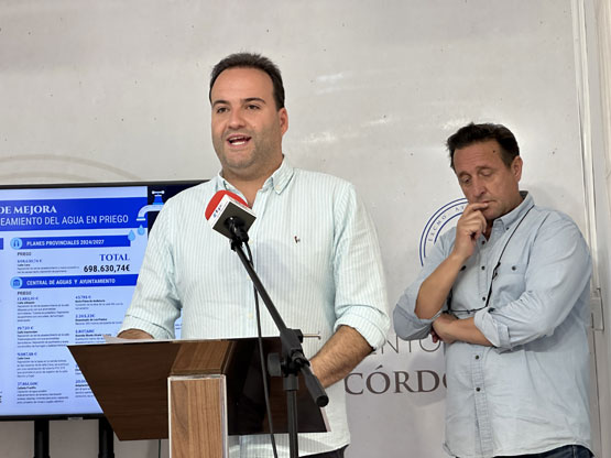 En una rueda de prensa celebrada en la sala de prensa del Ayuntamiento de Priego de Córdoba, el alcalde de Priego Juan Ramón Valdivia y el concejal de Infraestructuras, Javier Ibañez, han anunciado las inversiones que se han destinado a la mejora del abastecimiento y saneamiento de agua en el municipio durante el periodo desde que se inició el presente mandato municipal. Estas inversiones, que ascienden a un total de 4.033.264,53 euros, tienen como objetivo asegurar el suministro y la calidad del agua, abordando, en algunos casos, los problemas de sequía y abastecimiento que se agravaron durante el verano de 2023.
